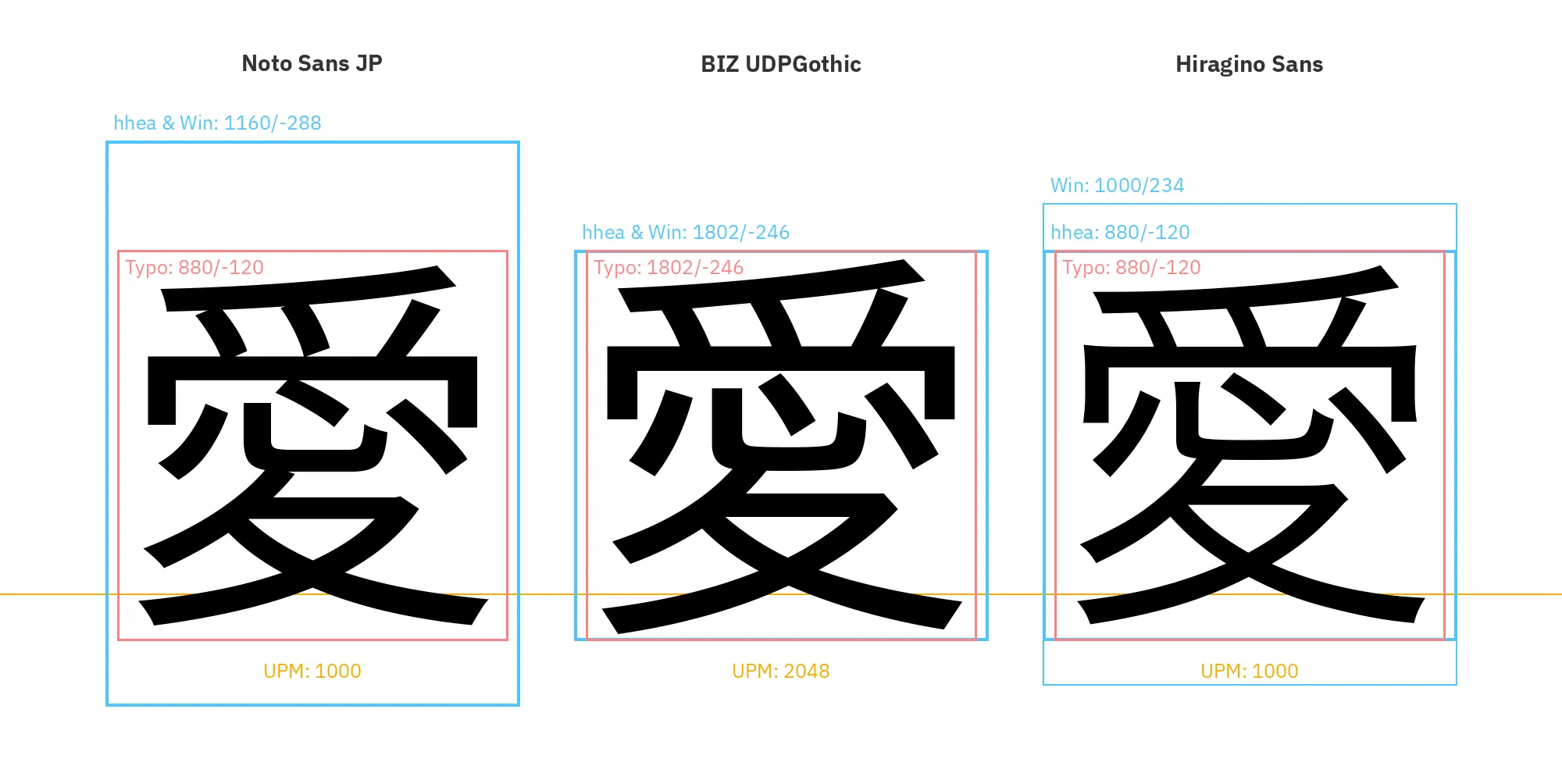 仮想ボディ - かそうぼでぃ | 武蔵野美術大学 造形ファイル、見やすさと印象が大きく変わる!“字面”を知って最適なフォントを選ぼう|ヒラギノフォント公式note、日本語は「正方形」! 意外と知らない文字設計 | ブログ - Morisawa DTP Lab. | 株式会社モリサワ ↩