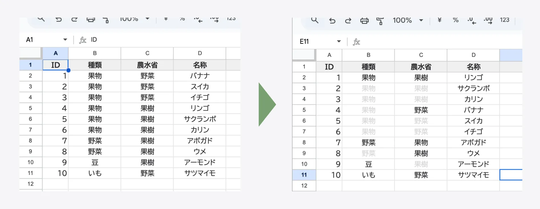 - セル結合と異なり、データの編集や並び替えが自由に行える