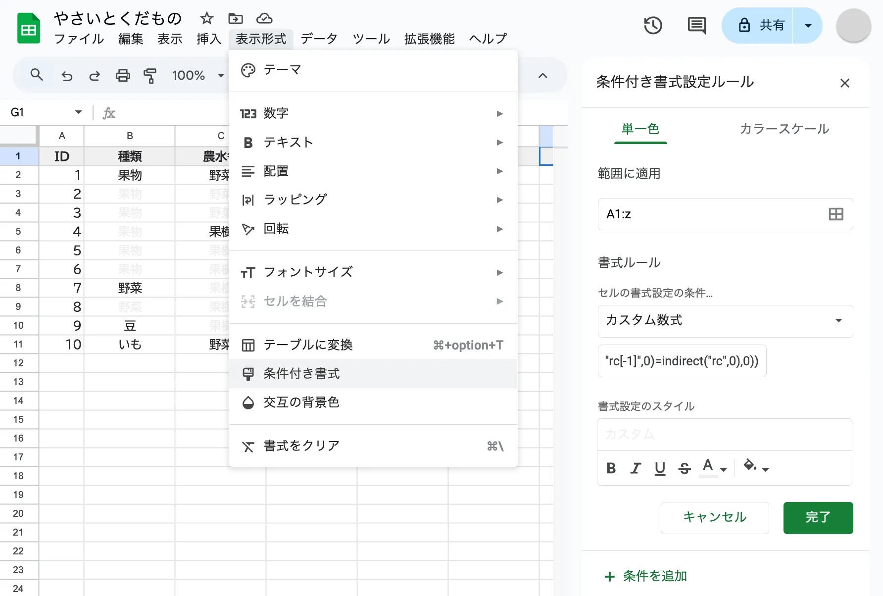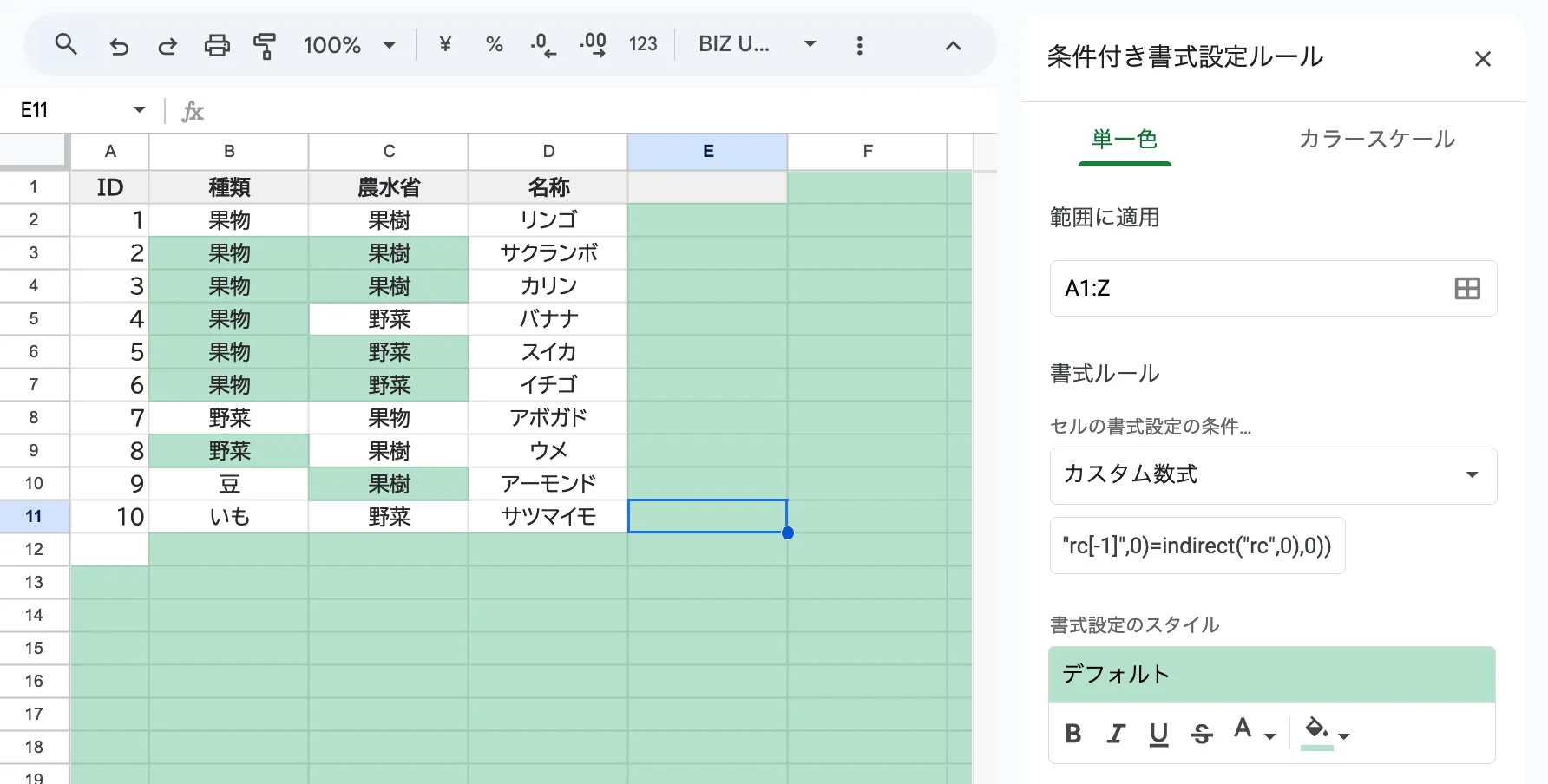 セル結合を使わない、indirectの条件付き書式で表をスッキリ見やすく扱いやすく